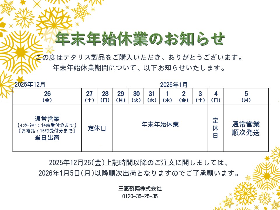 年末年始休業のお知らせ